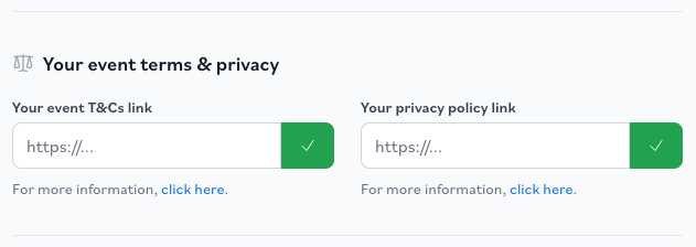 How do I share T&Cs (including a refunds policy) and privacy policy with attendees?