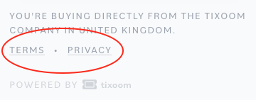 A summary on how Tixoom's event ticketing platform for Zoom lets you share your event terms and refunds policy, and your privacy policy.